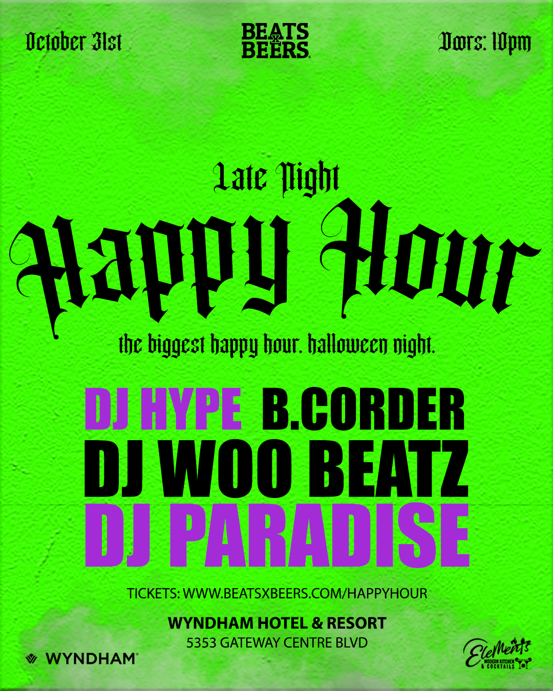 Halloween night, you’re invited to the biggest Happy Hour! Put on your favorite costume or put on your outfit to impress…. either way, this is the best place to be Halloween night. Yes, there will be happy hour food and drink prices, something you won’t find on Halloween. An all star DJ line up featuring DJ Hype, B.Corder, DJ Woo Beatz, and DJ Paradise will set the vibe for the night. For a limited time only, there’s a Happy Hour priced ticket. Get yours while they last! Happy Hour Menu + More to be announced soon!